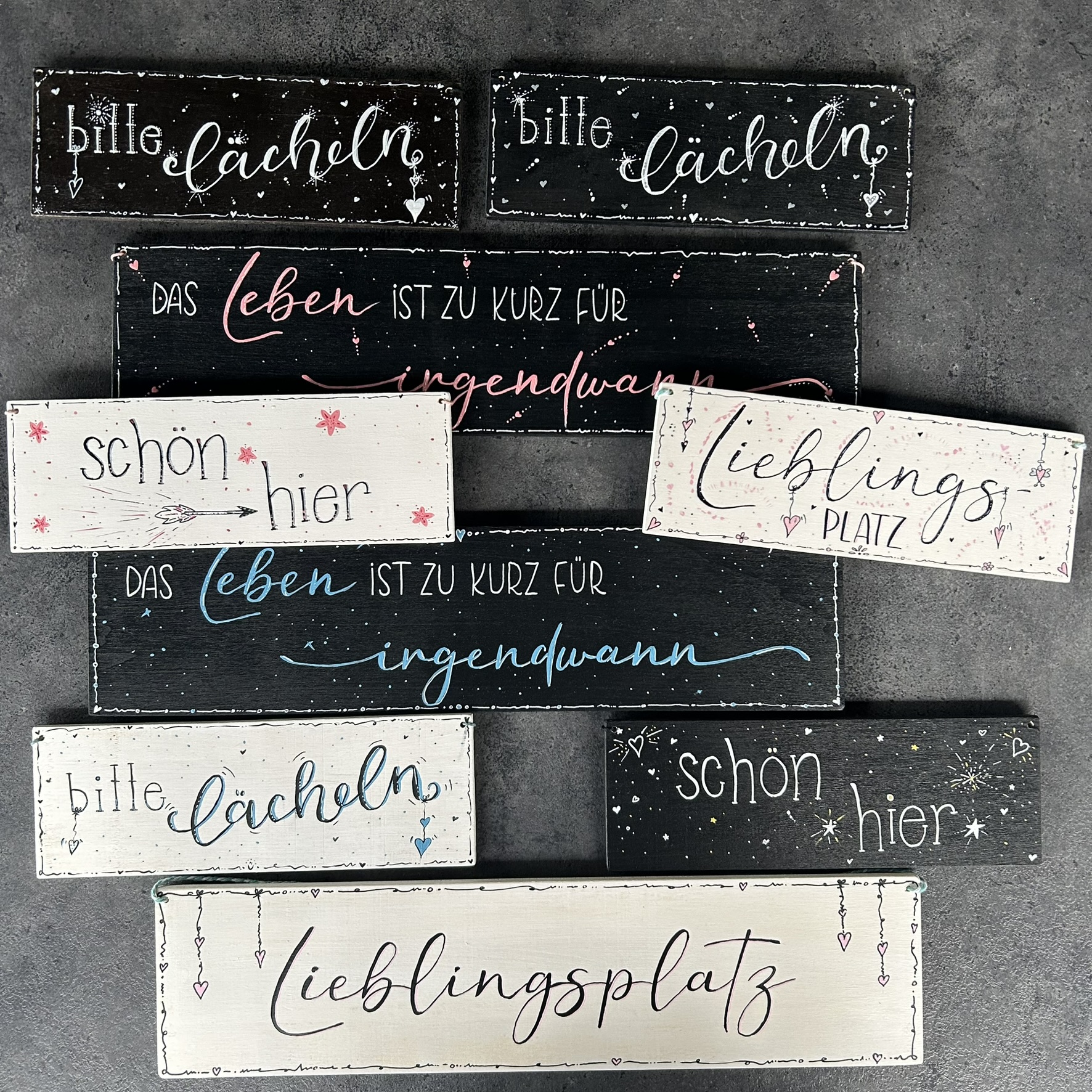 Bei mir findest du hauptsächlich handbemalte Holzschilder ... bestehende Sujets / Sprüche oder individuelle nach Anfrage.